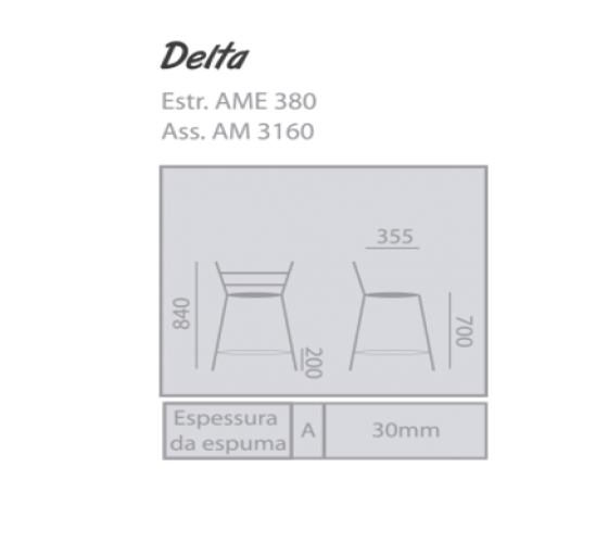 A Banqueta Alta Delta possui assento em espuma anatômica injetada de alta densidade e revestimento em courvin, estruturado em base tipo 04 pés, em tubo de aço carbono de secção circular, com acabamento na cor preta e ponteiras injetadas em polipropileno para contato com a superfície do piso.