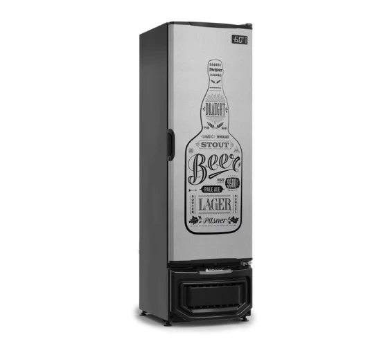 Conservação e Exposição de Cervejas e Bebidas (Água, Sucos e Refrigerantes); Refrigeração: Ar forçado com evaporador aletado; Temperatura: -6, -4, +1C ou +3C (Modo Economia); Degelo: Automático (frost free); Controlador eletrônico com indicador de temperatura; Revestimento Interno: Aço pré-pintado branco; Revestimento Externo: Aço pré-pintado preto; Porta cega em Aço pré-pintado; Com adesivo; Prateleiras aramadas; Placa Fria; 3 níveis reguláveis; Pés niveladores; Condensador estático, com ventilação natural; Equipamento certificado conforme Portaria Inmetro nº 371/2009.