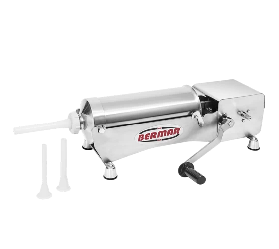 Aprimore sua produção artesanal com as Ensacadeiras de 8 litros - BM 126 Bermar. Desenvolvidas para otimizar o enchimento de linguiças, permitindo que a inserção da massa na tripa em um processo rápido e eficiente. Sua estrutura em aço inox é resistência à corrosão, garantindo durabilidade mesmo em ambientes úmidos. Acompanha funis de diferentes tamanhos, possibilitam a criação de linguiças em vários diâmetros. Estrutura constituída totalmente em aço inoxidável; Engrenagens e cremalheira em aço inoxidável; Bojo em aço inoxidável 304.