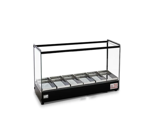 A linha EVR, traz a referências do estilo retrô para o seu negócio. Seu design clean e compacto confere melhor visualização dos produtos, além de preserva-los quentes e saborosos. Estrutura fabricada em perfil de alumínio anodizado e aço inox; bandejas com dobras em aço inox; vidros laterais com serigrafia, tratados termicamente (não solta com temperatura); com todos os vidros temperados; termostato; resistência elétrica em aço inox 304 tubular; fiação elétrica com revestimento em silicone resistente a 300°C. Disponibilidade com Iluminação LED.