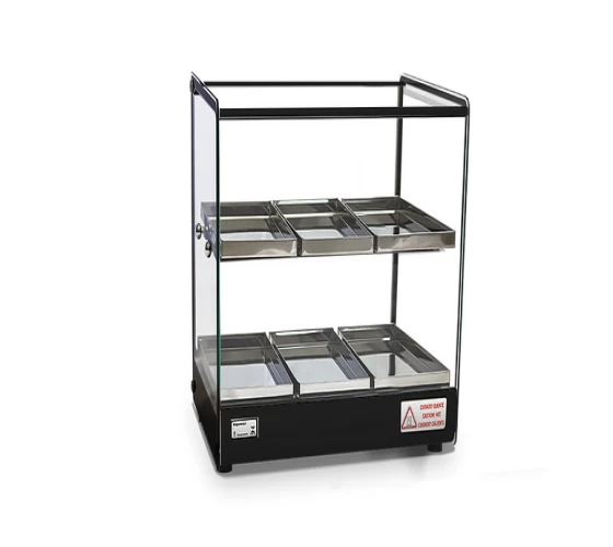 A linha EVR, traz a referências do estilo retrô para o seu negócio. Seu design clean e compacto confere melhor visualização dos produtos, além de preserva-los quentes e saborosos. Estrutura fabricada em perfil de alumínio anodizado e aço inox; bandejas com dobras em aço inox; vidros laterais com serigrafia, tratados termicamente (não solta com temperatura); com todos os vidros temperados; termostato; resistência elétrica em aço inox 304 tubular; fiação elétrica com revestimento em silicone resistente a 300°C. Disponibilidade com Iluminação LED.