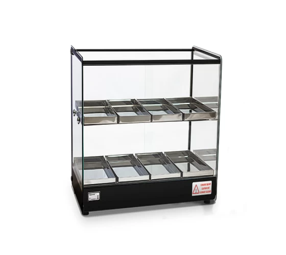 A linha EVR, traz a referências do estilo retrô para o seu negócio. Seu design clean e compacto confere melhor visualização dos produtos, além de preserva-los quentes e saborosos. Estrutura fabricada em perfil de alumínio anodizado e aço inox; bandejas com dobras em aço inox; vidros laterais com serigrafia, tratados termicamente (não solta com temperatura); com todos os vidros temperados; termostato; resistência elétrica em aço inox 304 tubular; fiação elétrica com revestimento em silicone resistente a 300°C. Disponibilidade com Iluminação LED.