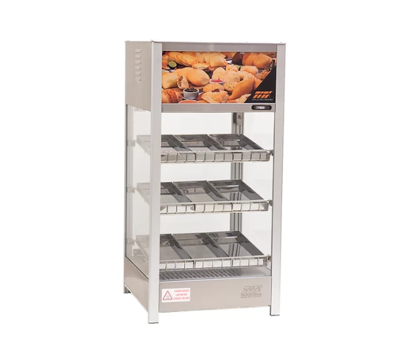 Um novo conceito em conservação dos alimentos. Trabalhando de forma estática, a estufa Vapor eleva a umidade relativa do ar ao seu limite, evitando que os alimentos sejam desidratados, mantendo a textura e o sabor original. Estrutura fabricada em perfil de alumínio anodizado e aço inox; com todos os vidros temperados; bandejas em aço inox; grelha em aço carbono niquelado; termostato; termômetro analógico; iluminação LED; display com foto (exceto modelos SD - sem display); recipiente tipo gaveta para adicionar água e gerar umidade; resistência elétrica em aço inox 304 tubular; fiação elétrica com revestimento em silicone resistente a 300°C.