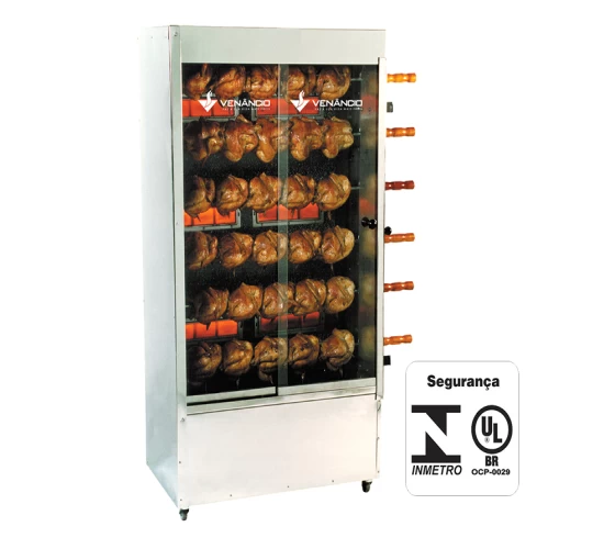 ■ Espetos equipados com ganchos duplos e simples para melhor fixação dos frangos;